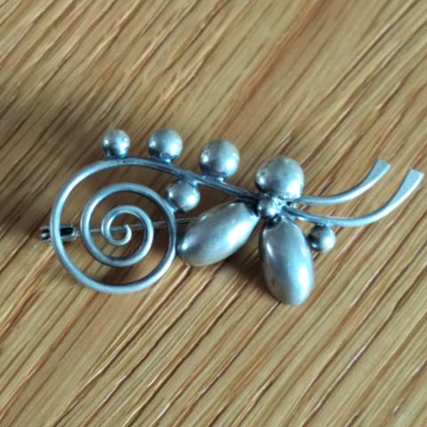 Fin broche gaffel og ske formet som et hjerte fra Siersbøl