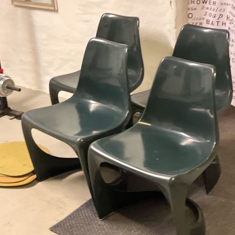 Sæt på fire smukke Cado stole i plastik designet i 1972 af Steen Østergaard.
