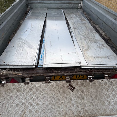 Aluplade med målene 200 cm i længden og 190 cm i bredden. Pladen har en tykkelse på cirka 0,6 cm den har sikkert aldrig været i brug, mega flot så flot at jeg ikke vil begynde at skære i den, kunne bytte med aludørkplade..