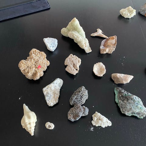 Mineralsamling i trææske med 48 forskellige mineraler og sten