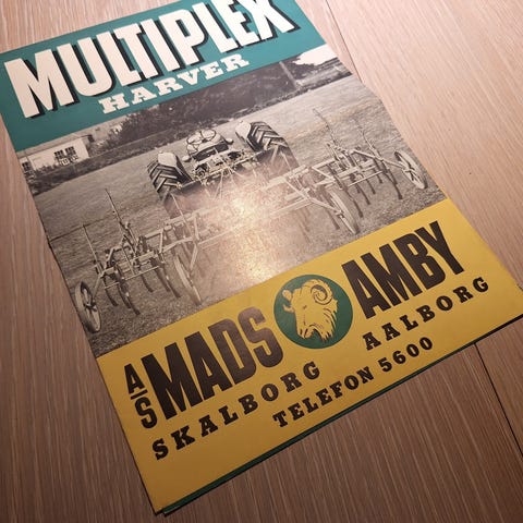 4 stk reklame sider/foldere med landbrugsmaskiner, bl.a harver