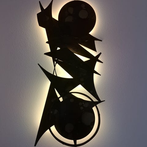 Væglampe, Industriel STOR og gammel lampe i jern fra fabrik.