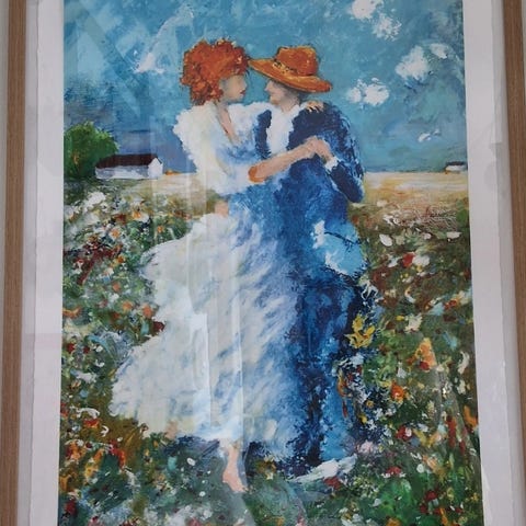litografi af dansende par i ramme af Hans Steffensen fra 2002
