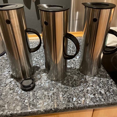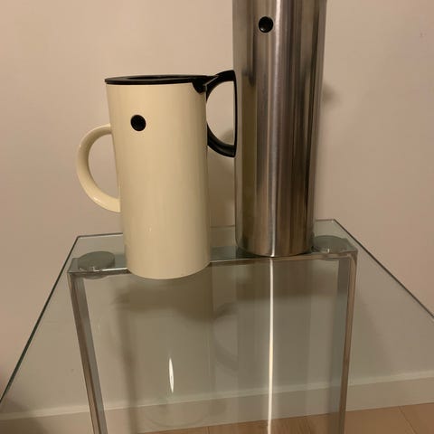 6 stk Stelton termokander i plast - sælges samlet. 5 stk hvide og 1 stk sort