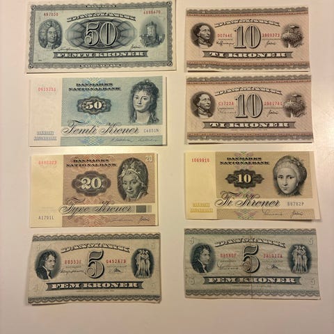 3 x 50 kr. pengesedler med fortløbende numre fra 1985