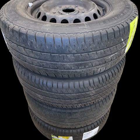 Monteret med 215/75-16 Rotalla vinterdæk. 2 med ca 6 mm og 2 med ca 8 mm mønster.