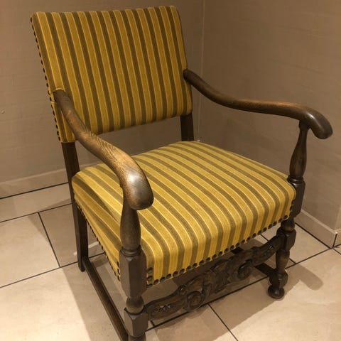 Ældre Lænestol med en smuk patina og detaljer, pæn stand
