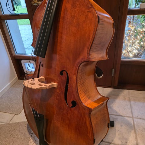 Nyrestaureret tysk 3/4 kontrabas med Wilson pickup formentlig fra 1993. Bassen er til både jazz, klassisk. Ja, den kan bruges til det meste og altså også med forstærkning. Bassen står som på billederne, men jeg kan være behjælpelig med køb af både taske og bue, hvis det ønskes.