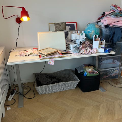 Hævesænkeskrivebord i lyst træ (Byd gerne)