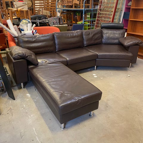 Hvid hjørnesofa i savoy læder. Formstabil koldskum. 3 nakkestøttere samt 1 armlænspude medfølger.