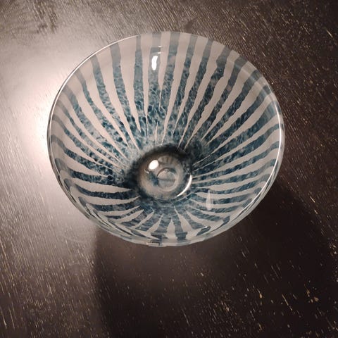 Multifunktionel tydeligt glaspuster skål. Signeret håndskrift Design Glaspuster serie for Halsnæs kommune.