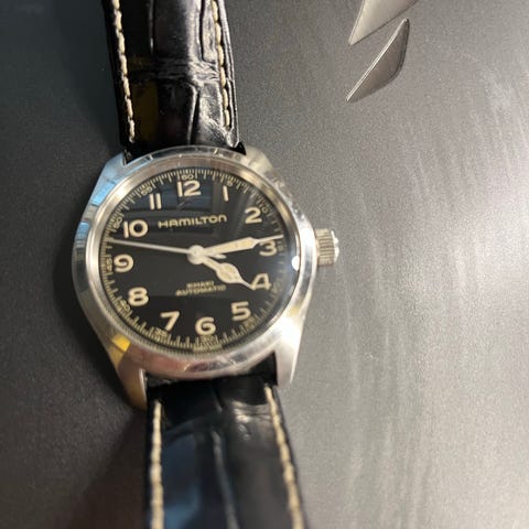 Hamilton Khaki Field Mechanical H69529133 ur med brun læderrem samt orginal stålrem.