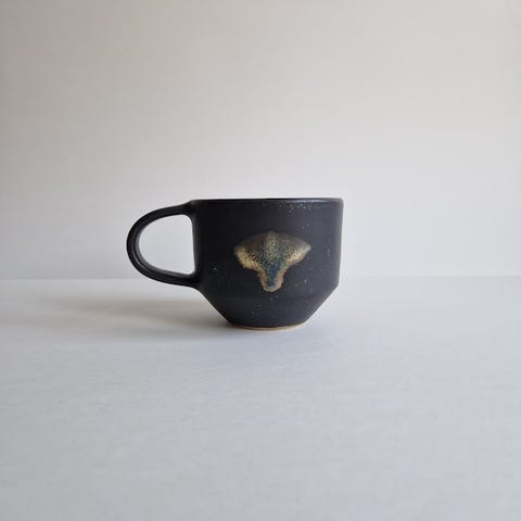 Håndlavet keramik krus i stentøj. Tåler opvaskemaskine. Kan rumme ca 3 dl.