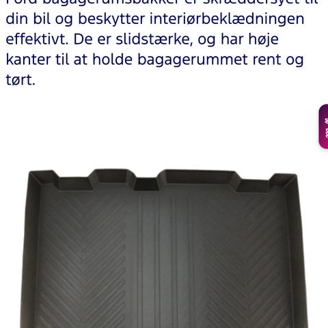 Ford Mondeo bagagerumsmåtte i gummi. Måtten er designet til at passe i bagagerummet på Ford Mondeo og har kanter for at forhindre spild og beskytte bagagerummet mod snavs og væsker. Den skal blot have en vask, så er den i vinkel