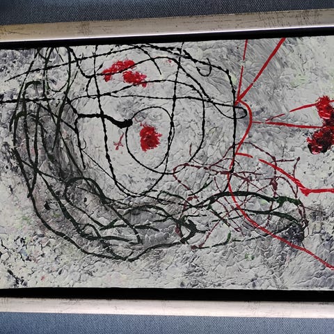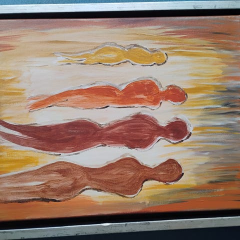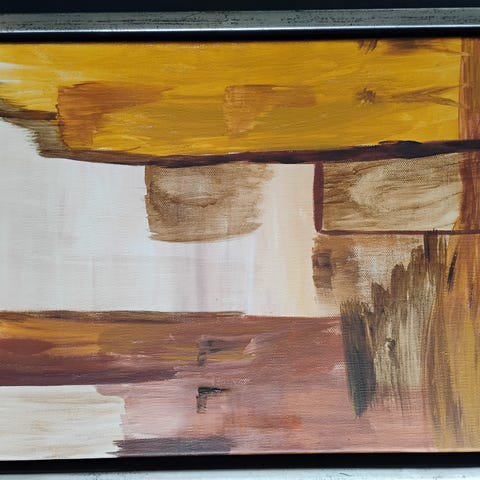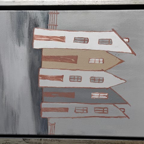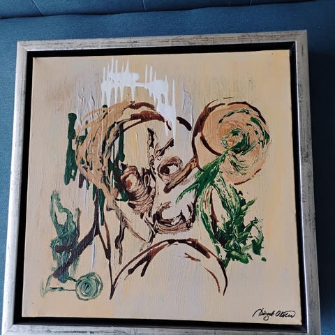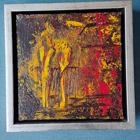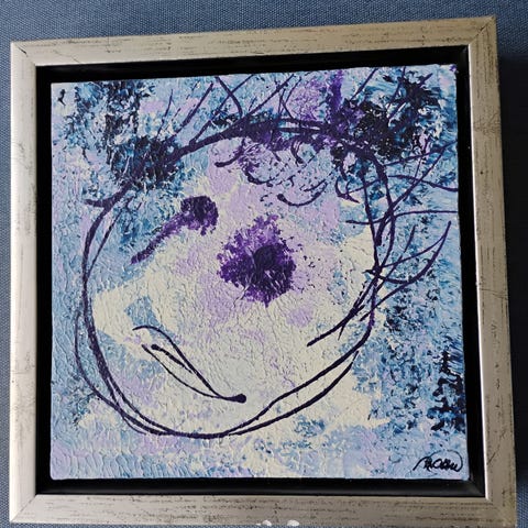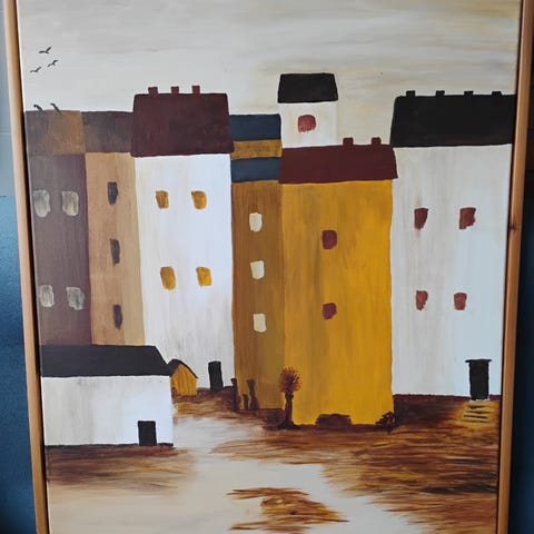Unika billedkunst af den bornholmske maler Birgit Olsen. Birgit har udstillet flere steder bl.a. Bornholms Lufthavn. Størrelse 33 cm høj x 33 cm bred