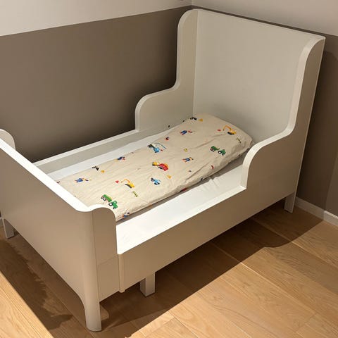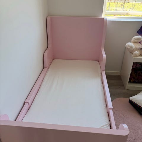 Juniorseng med madras bygget som et hus. Særdeles flot velholdt kun 1 år gammelt. Mål ca. 170 x 75cm