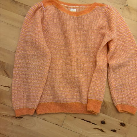 Blomstret retro strik. Roser. Superflot lilla, pink og cremefarvet. Som plukket ud af de lårkorte 80’er/90’ere ✨. Str. S.