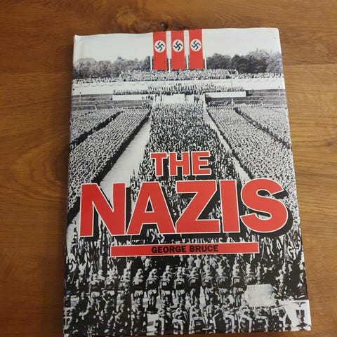 Bog med titlen "Nazi sabotørerne" med undertitlen "Angrebet på Amerika". Bogen indeholder historisk indhold om nazistiske sabotører og deres aktiviteter i Amerika. Teksten er på dansk.