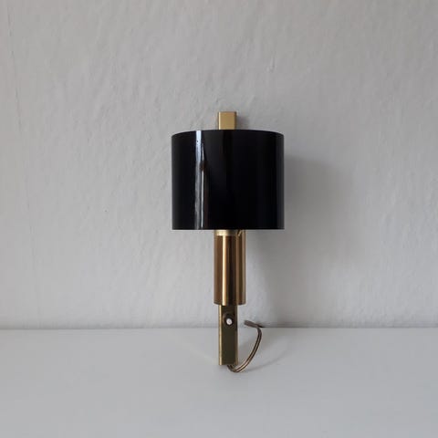 Forgyldt messing - glasskærm - trykafbryder på ledning - med mærkat.