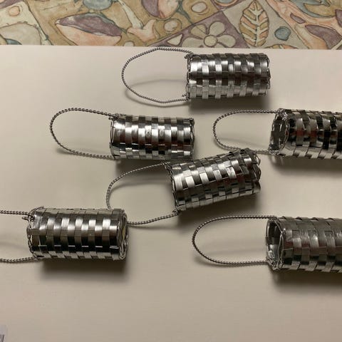 Antik vatpynt kurv med voksblomst, tinsel og oblat, bouillontråd. Hank lavet i flot drath tråd i metal.