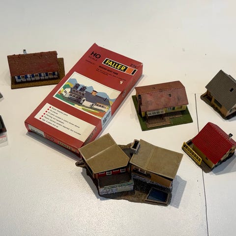 Pæn lille samling af 10 danske forstadsvillaer samt 1 stk butikscenter. Primært Heljan og Faller sælges helst samlet. Pyntegrønt kan medfølger.