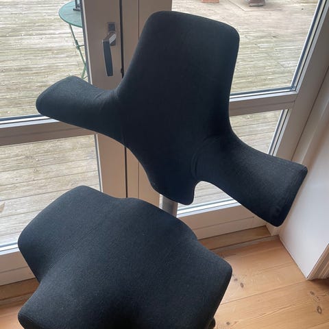 Sælger en grå HÅG Capisco 8106 i perfekt stand og fuldt funktionsdygtig, uden mærker eller skader. Har 265 mm gaslift (sædehøjde justerbar fra 570 til 810 mm), ideel til både siddende brug og ved hæve-/sænkebord.