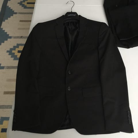 Fint jakkesæt fra Lindbergh i klassisk sort. Str XS. Kun brugt en gang. Superflex bukser. Skjorte og slips medfølger.