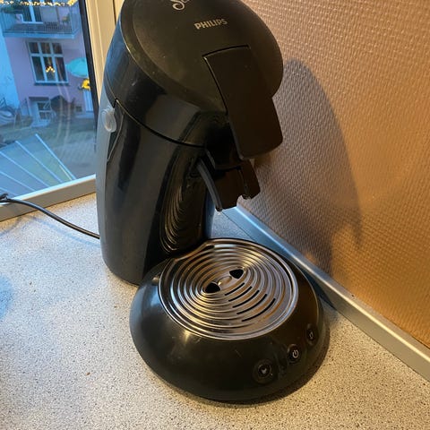 Philips kaffemaskine i sort farve. Kompakt design med brugervenlig betjening. Egnet til brygning af kaffe til husholdningsbrug.