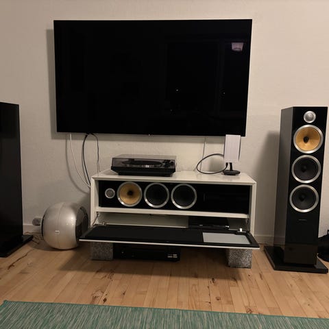 Super fine og velspillende gulv højtaler fra b&w i piano black, eneste lille ting er at diskanterne er trykket lidt.