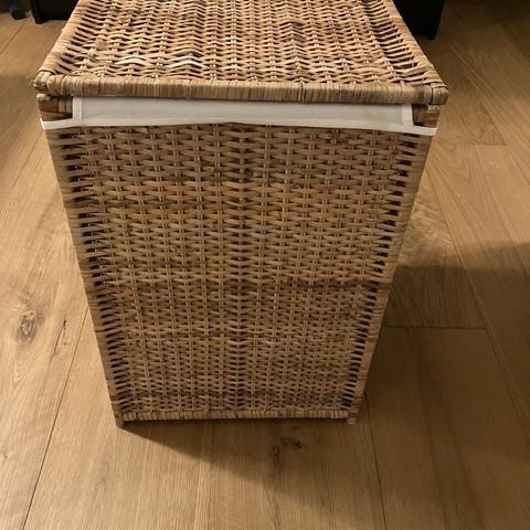 Flettet vasketøjskurv med tre rum. L 65 x B 34 x H 60