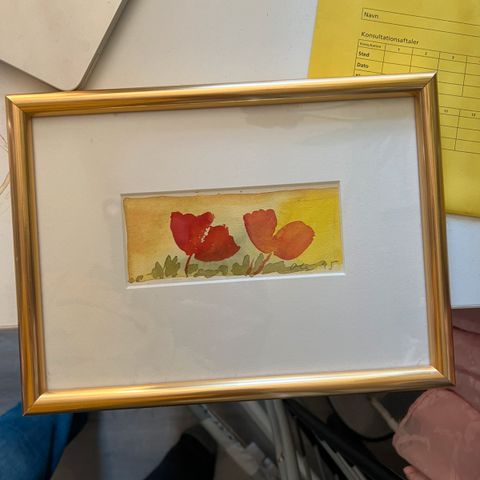 blomsterbilled, motiv: bonderose, romantisk blomsterbilled af bonderose i træramme måler 46 x 35 cm