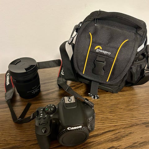 Canon EOS 80D spejlreflekskamera med aftageligt EF-S 18-55mm objektiv.