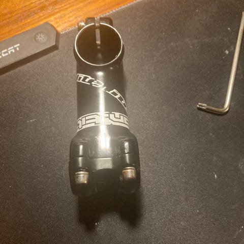 Deda Superbox styrfrempind i sort farve. Frempinden er designet til montering på cykelstyr og kablerne kan integreres på flere forskellige måneder. 130 mm