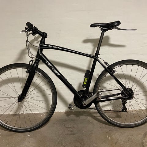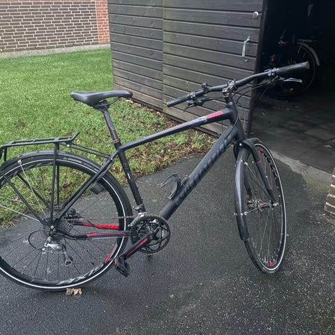 Rigtig fin specialized sirrus str L sælges. Cykler har lige fået udført stort eftersyn, hvor kæde/krans er blevet skiftet. Med shimano 3x8 udvendige gear. Med lås og støtteben. Cyklen køre og virker som den skal.
