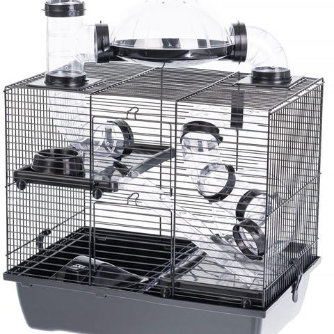 Giv din lille ven et trygt og indbydende hjem med INTER-ZOO Bob + Wood. Buret er velegnet til hamster og andre små gnavere og leveres med praktisk udstyr, så du hurtigt kommer i gang: løbehjul, hus, skål og ekstra gulv i træ, der skaber et hyggeligt niveau til leg og hvile. Den beige bund passer diskret ind i hjemmet.