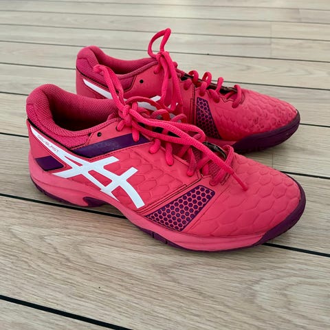 Mizuno Wave Rider løbesko i rød og sort farve. Skoene har snørebånd og er designet til løb. Størrelse 38