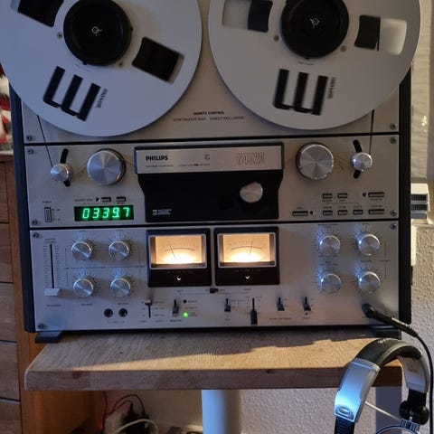 PHILIPS N7300. Virker som den skal. Pære i det ene VU-meter defekt. Maskine har for nyligt kørt ca 10 timer uden problemer.