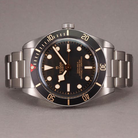 Flot og sporty Tudor Black Bay “Monocrome” 41mm som blev introduceret i 2024. Uret kommer på Tudors jubilee lænke 5-link med Tudor T-fit lås. Inde i den massive stålkasse sidder Tudors Calibre MT5602-U som yder en gangreserve på 70 timer samt vandtæthed ned til 200 meter.