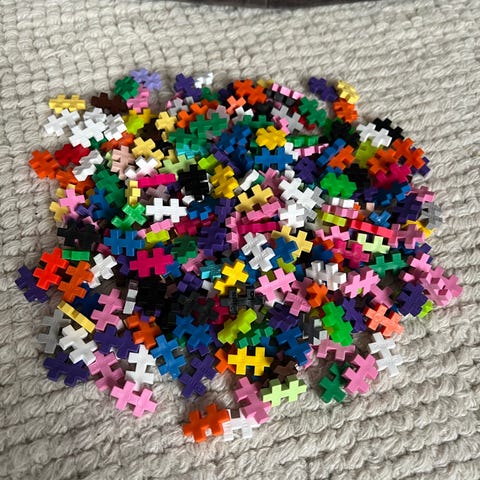 Plus Plus byggeklodser til børn i forskellige farver og former.