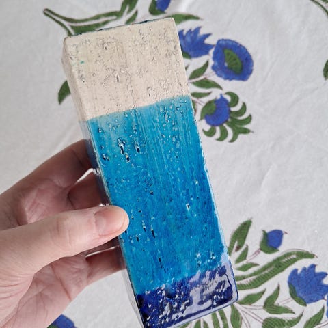 Den har karakteristiske geometriske mønstre håndpræget på alle 4 sider