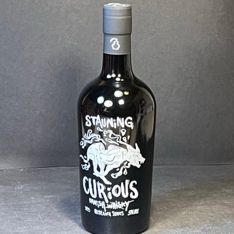 Alcohol: 46,8% Stauning KAOS Whisky, dansk whisky med en alkoholprocent på 46,8%. Flasken indeholder 50 cl.