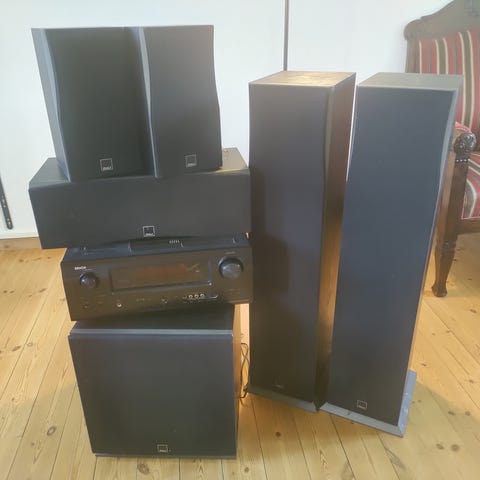 Denon/Dali Hjemmebiograf Højttalersystem med reciever, højtalere og subwoofer