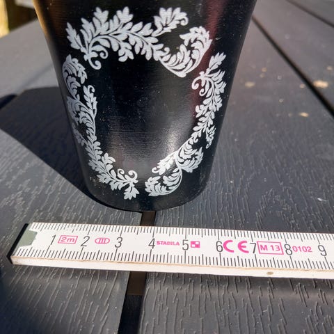 Super fin krukke med tørrede blomster i og korklåg. Mål på foto.