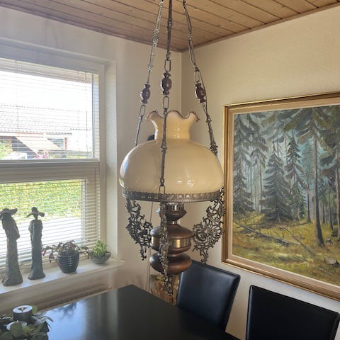 Hængependel med 120cm ny brun stofledning påmonteret og ny LED pære 680Lm isat.
