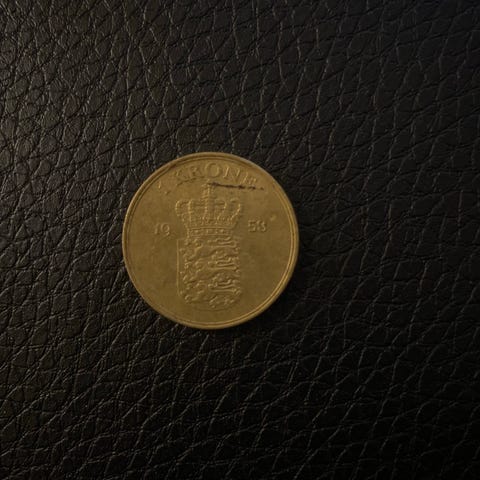 Dansk 10 Kroner mønt fra 1992. Mønten er lavet af metal og har en diameter og vægt i overensstemmelse med standarden for danske 10 Kroner mønter fra denne periode.