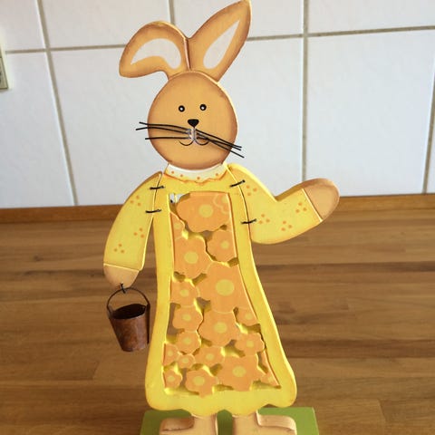 Flot håndlavet påskehare i egetræ, med plads til et kinderæg i midten.