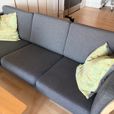 Pæn og velholdt sofa med løse hynder.
