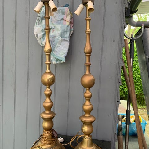 Gamle messinglamper til loft og væg.