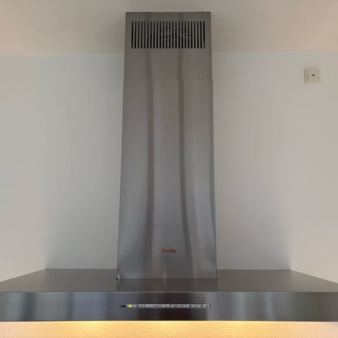 Miele glas/rustfrit stål frithængende emhætte for montering over kogeø