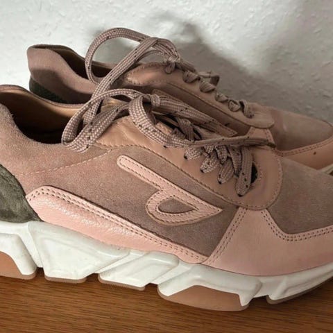 Super flotte håndlavede sneakers fra Billi Bi i grøn ruskind, detaljeret med patchwork i grøn, guld, sort og beige. Sorte snørebånd. Dame str. 38. Komfortable og ergonomisk korrekte for foden, med blød læder sål. Kun brugt 2 gange så meget fine og som nye. Se billeder. Nypris var kr. 1199,95,-